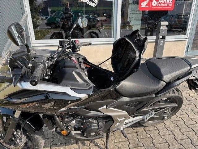 Dein neues Motorrad soll ein vielseitiger Allrounder werden? Dann bist du hier genau richtig. Die NC750X mit langen Federwegen und Zweizylindermotor ist perfekt für den Weg zur Arbeit, Touren und alles, was dazwischen liegt. Dazu gibt es jetzt ein neues Modell. Das robuste, zackige Styling wird durch einen LED-Scheinwerfer und einen 5-Zoll-TFT-Bildschirm mit nahtloser Honda RoadSync Smartphone-Konnektivität geprägt. Das Vorderrad ist jetzt mit einer Doppelscheibenbremse mit verbesserter Bremsleistung ausgestattet. Bei der Verkleidung kommt DurabioT zum Einsatz. Außerdem überrascht die NC750X mit einem versteckten Extra: 23 Liter integrierter Stauraum, genug für einen Adventure-Integralhelm. Das ist nicht einfach nur ein unkonventioneller Ansatz. Das ist der Ansatz, der sich einem bei diesem Motorrad quasi aufzwängt.