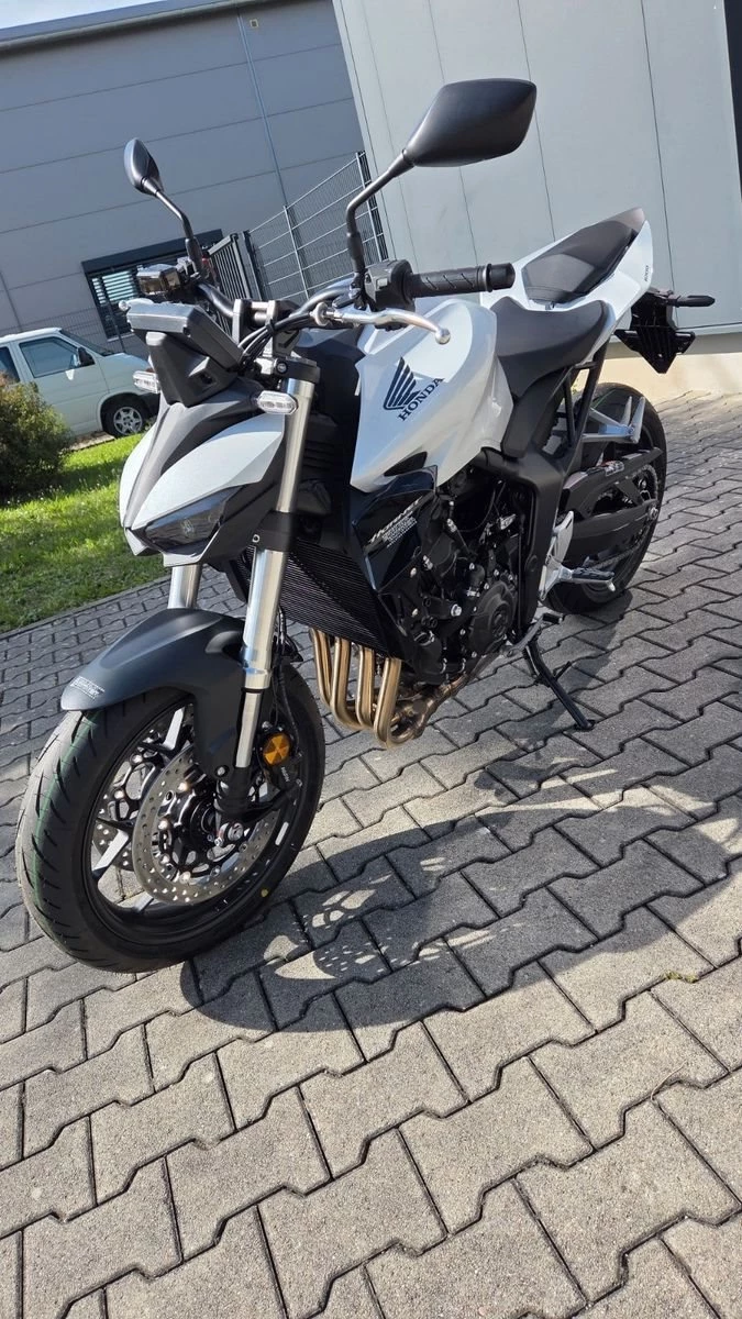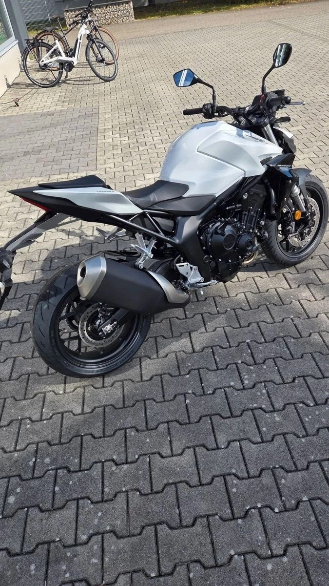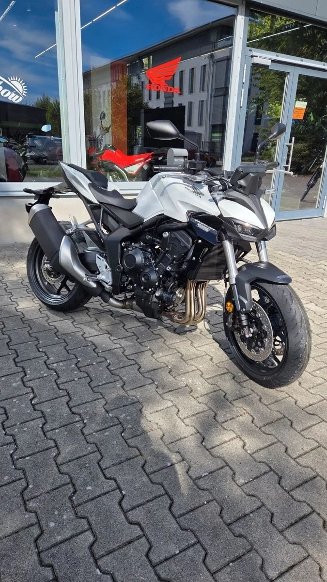 Die Hornet-Familie ist jetzt vollständig und unser Topmodell sticht heraus. Die neue CB1000 Hornet mit ihrem Vierzylindermotor ist ein erstklassiges Naked Bike, das den Asphalt zum Glühen bringt. Throttle By Wire sorgt für präzise Kontrolle, während das Fahrwerk mit der einstellbaren SHOWA 41mm SFF-BP Upside-Down-Gabel und dem Pro-Link-Federbein ausgestattet ist. Die unverfälschte, aggressive Streetfighter-Attitüde wird durch einen markanten LED-Doppelscheinwerfer unterstrichen. Das 5-Zoll TFT-Farbdisplay und die Honda RoadSync-Konnektivität sorgen für die nötigen Informationen. Kann es losgehen?