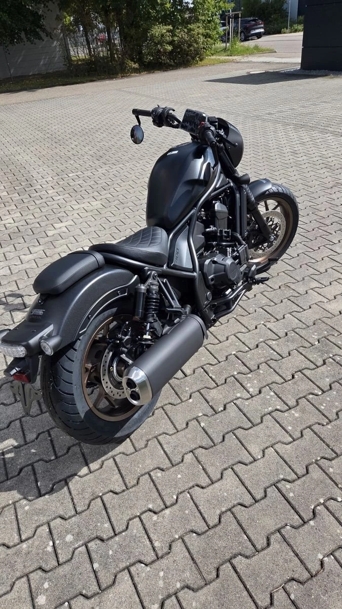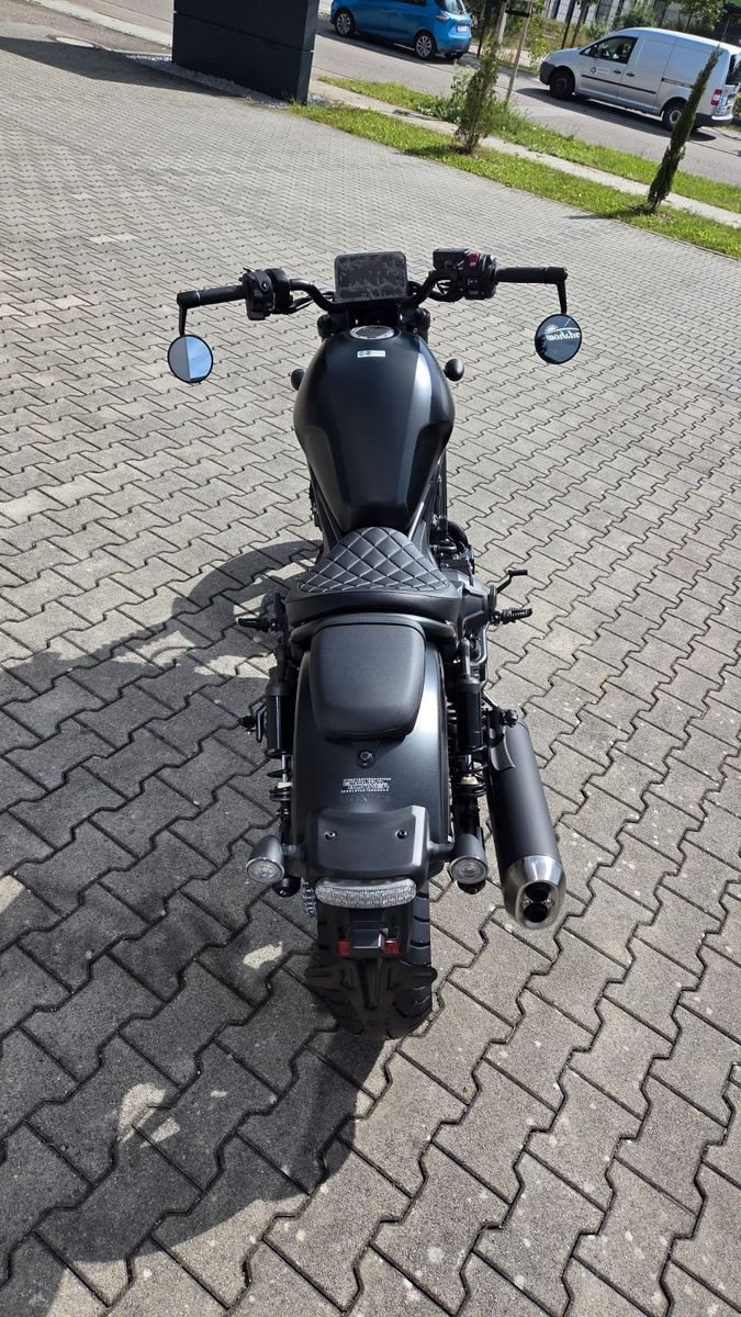 Lang, niedrig und schönSchlank ist die CMX1100 Rebel auch..Auf 710 mm Sitzhöhe sind bei niedrigen Geschwindigkeiten einfaches Handling und sicheres Aufsetzen der Füße eingebaut. Und die Details sind genau richtig ausgearbeitet. In den nahtlos gefertigten, bogenförmigen Kraftstofftank über dem muskulösen Motor passen 13,6 Liter. Die vorderen und hinteren Schutzbleche sind aus 1 mm dickem Stahl gefertigt und auf Aluminiumdruckguss montiert. Der runde Scheinwerfer ist ein echter Klassiker des Motorraddesigns, überrascht aber mit moderner Pointe: Seine vier hellen LED-Leuchten definieren den Rebel-Stil - wie übrigens auch die LED-Blinker und das Klarglas-Rücklicht. Die CMX1100 ist zudem so proportioniert ist, dass sie auch mit Fahrer gut aussieht - denn das ist wichtig.
